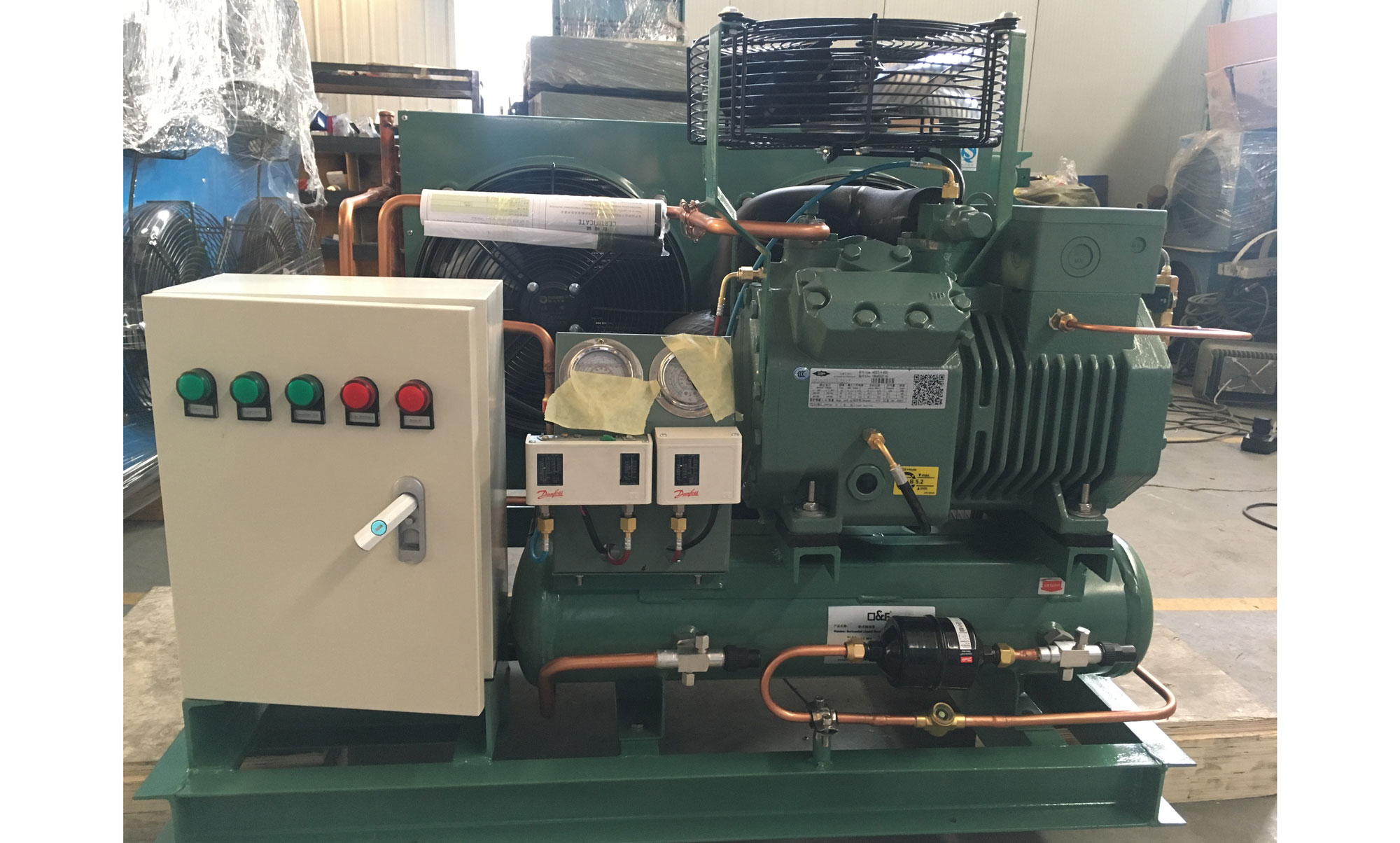 2、比泽尔压缩机内置电机断路装置,能有效的保护电机免受高温及高电压流之损坏;
