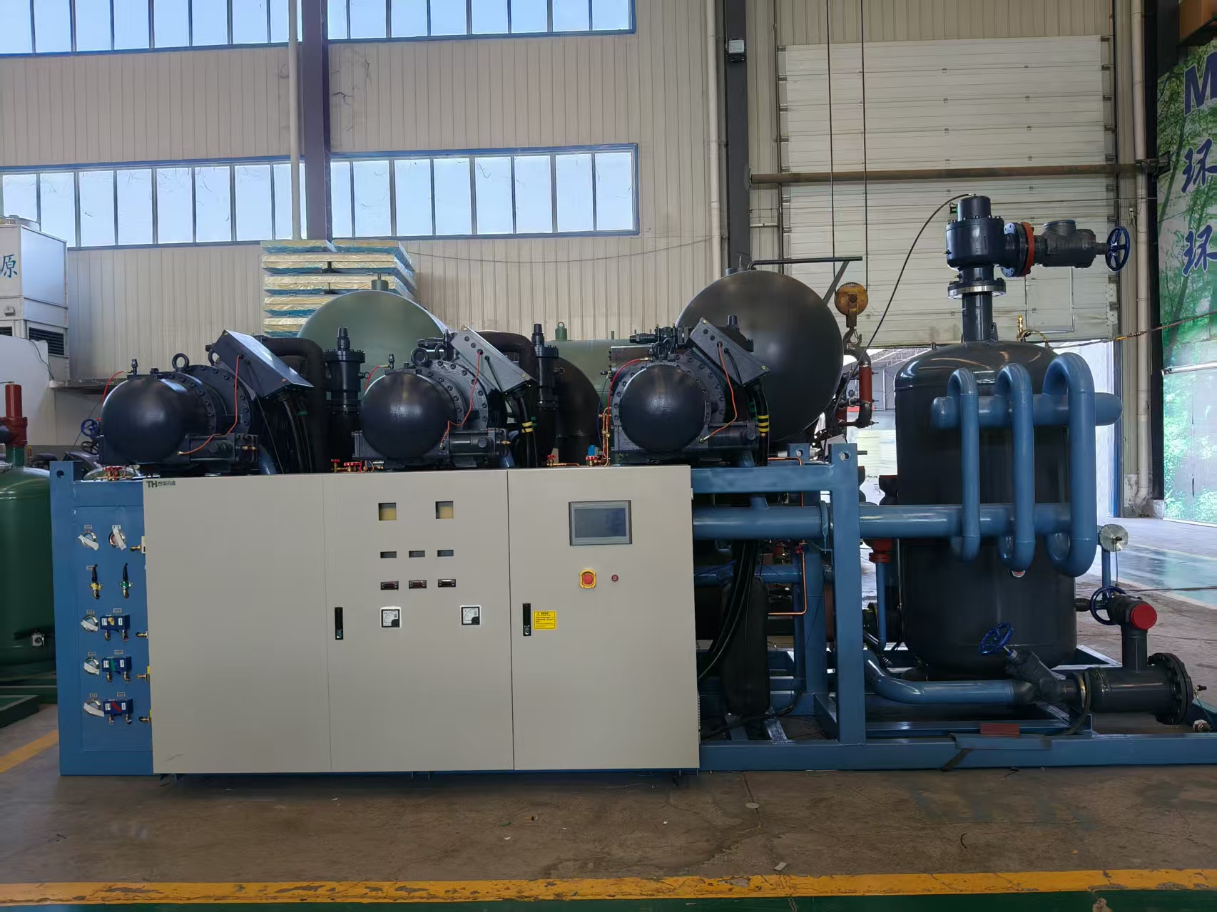 麻豆免费看片视频MV公司生产的汉钟双级低温三并联制冷机组,采用的是西门子plc远程控制系统,是一款高效环保的冷库制冷机组,它采用三台单机双螺杆机组并联运行,可以实现更大的制冷量输出,同时还能降低噪音和振动,提高运行的舒适度。这台机组适用于各种低温冷库,速冻冷库等,有需要的老板,欢迎咨询